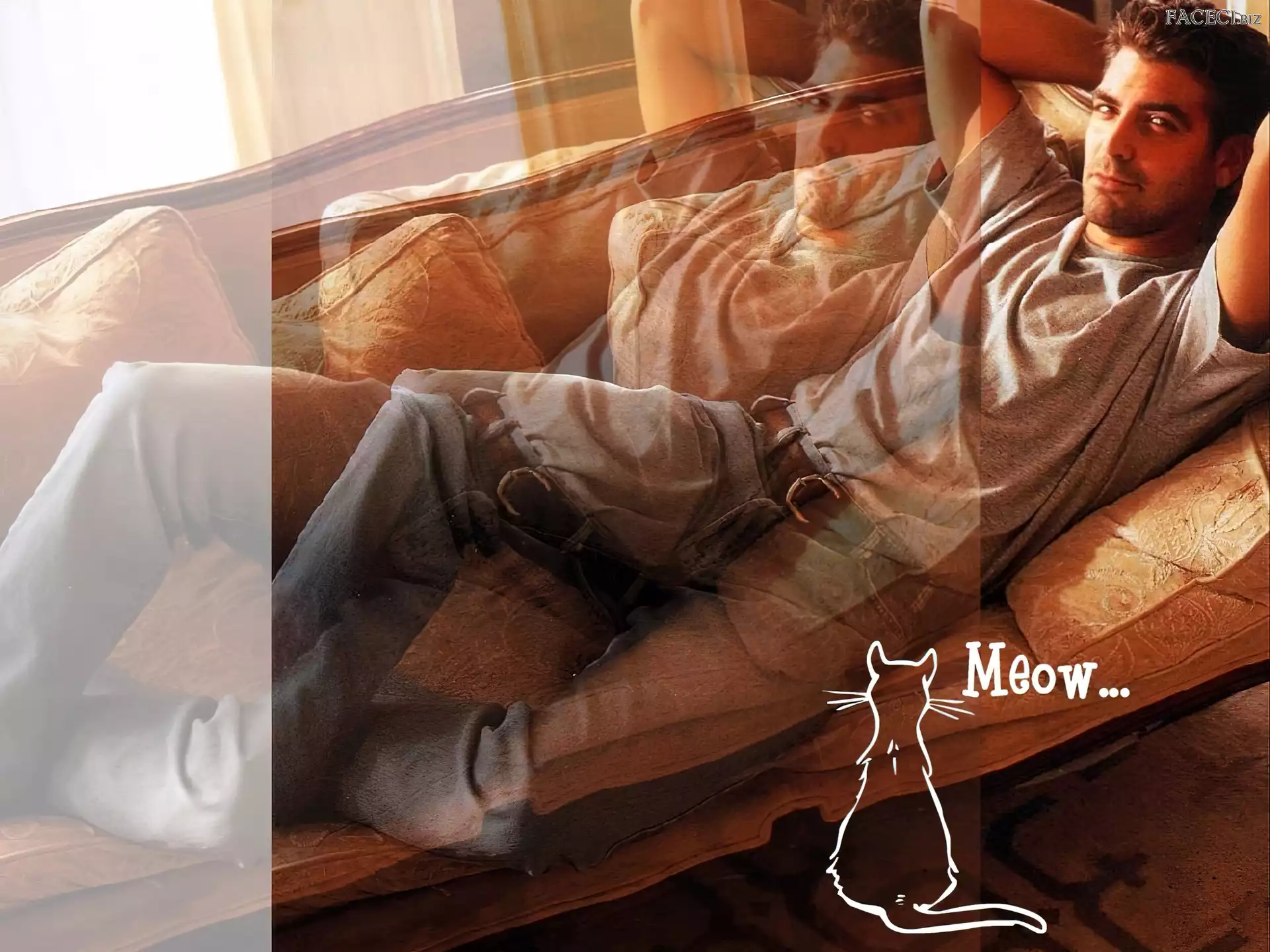 jeansy, George Clooney, szara koszulka